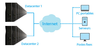 Protégez les données de vos postes de travail, portables et serveurs isolés avec des sauvegardes stockées sur nos deux datacenters dans le Cloud.